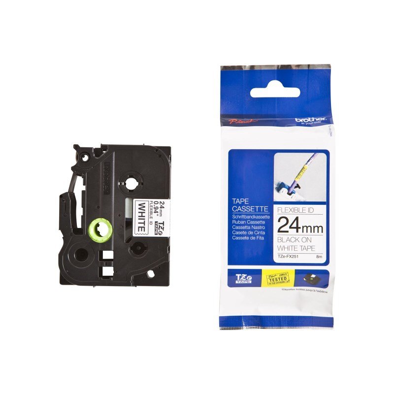 Kazeta s flexibilní páskou vhodnou pro denní použití v průmyslové výrobě, skladech, kancelářích apod. Tato páska je vhodná zejména pro označení ostrých hran a zaoblených předmětů.