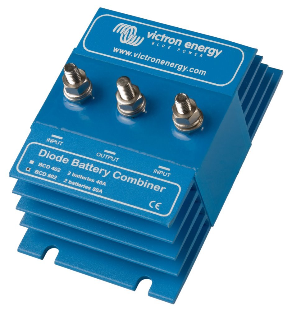 Diodový propojovač pro paralelní propojení baterií a napájení společných spotřebičů, maximální proud 80 A, pro 2 baterie a systémy 12/24 V.