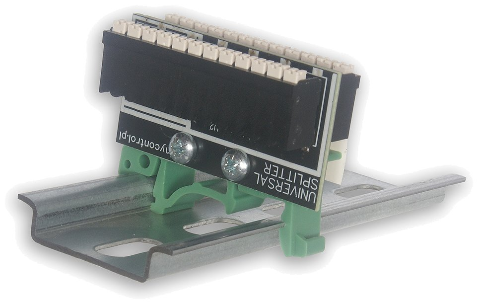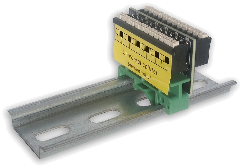 Universal DIN rail-mounted distributor with terminal blocks helps organize cabling in complex installations using the LAN controller.