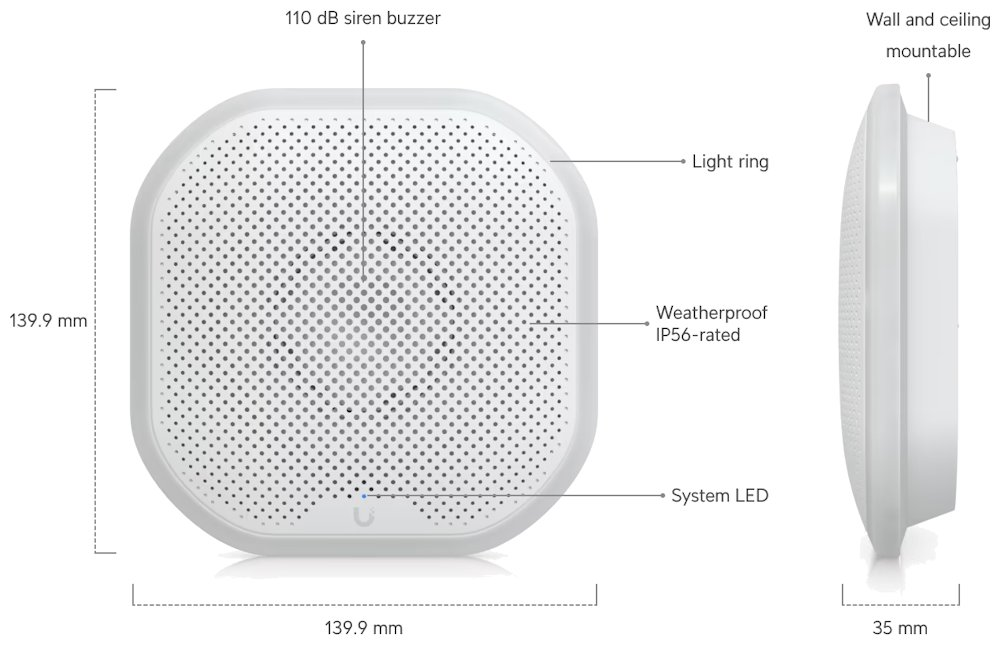 A professional security siren designed for both outdoor and indoor installations delivers a 110dB alarm and emergency LED lighting in one compact device. Power and data connection are provided by a single PoE cable with maximum consumption of only 5 W.