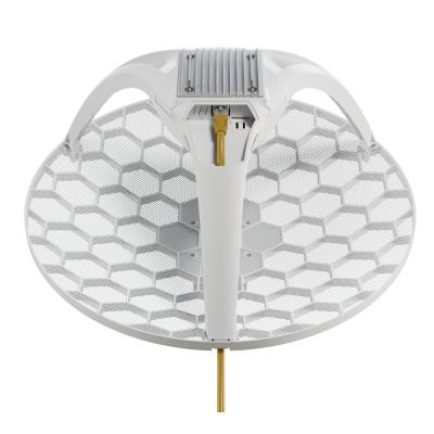 The antenna is equipped with a dual-core ARM 88F3720 processor running at 800 MHz, 256 MB DDR3L RAM and a Gigabit Ethernet port with PoE-In support (802.3af/at). The grid construction with dimensions 391 × 391 × 227 mm minimizes wind load while maintaining high antenna gain. Operating temperature range -40 to +70 °C and massive heatsink ensure reliable operation even in extreme conditions.